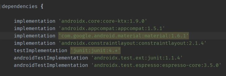 implementation 'com.google.android.material:material:1.6.1