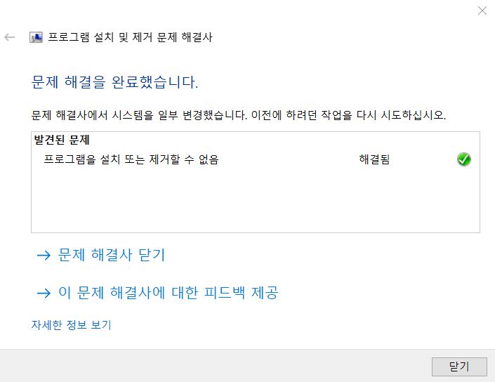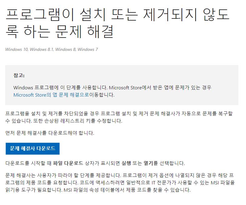 프로그램이 설치 또는 제거되지 않도록 하는 문제 해결 - Microsoft 지원