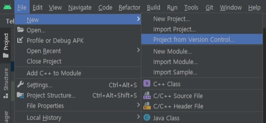 1_1. 다른 프로젝트가 열려있다면, [File New - Project from Version Control] 클릭 !