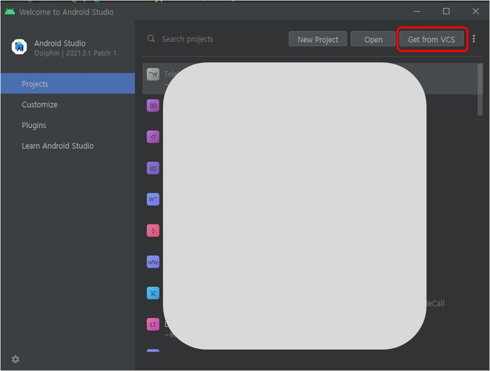 1. 프로젝트가 열려있지 않다면, 'Get from VCS'를 클릭한다.