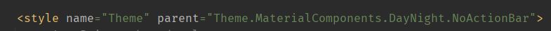 themes.xml 파일에서 NoActionBar 테마로 아래와 같이 수정했다.