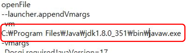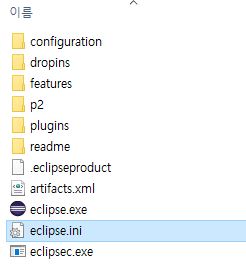 1. 이클립스 실행 파일이 있는 위치에 'eclipse.ini' 파일을 연다.